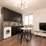 Stadium & Garage Bratislava, di 40 m^2, è situato nel quartiere Nove Mesto, a 2 km dal Teatro Nazionale Slovacco. Gli ospiti dell'appartamento, che è a breve distanza da Slovnaft Arena, dispongono di servizi di pulizia come una lavatrice.
